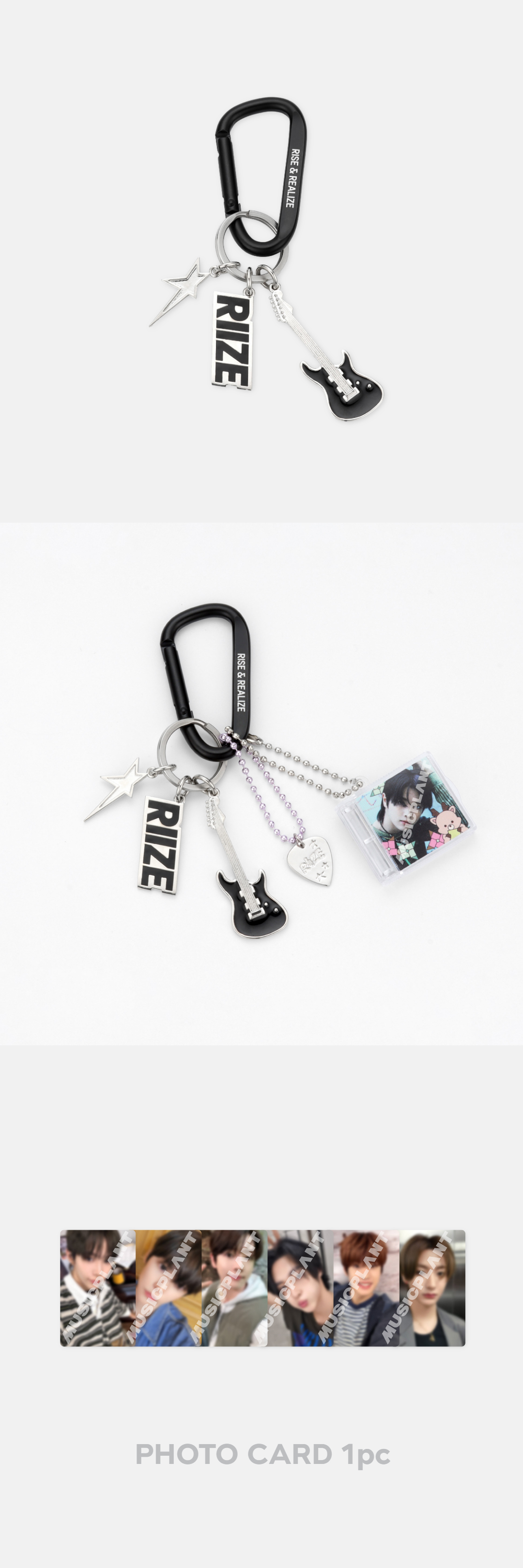 Size : Carabiner 58, Guitar Charm 15 X 50, Logo Charm 15 X 35, Star Charm 12 X 30, Photo Card 55 X 85 (MM)